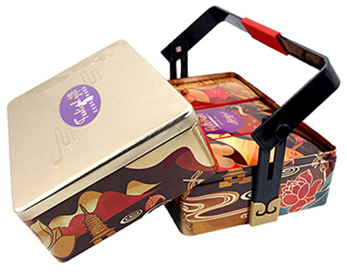 麥氏罐業(yè)生產(chǎn)的精美方形食品馬口鐵盒_中秋送禮雙層手提月餅鐵盒包裝,產(chǎn)品已遠銷國內(nèi)外二十多個國家與地區(qū),食品鐵盒包裝生產(chǎn)廠家咨詢熱線:18676322818。